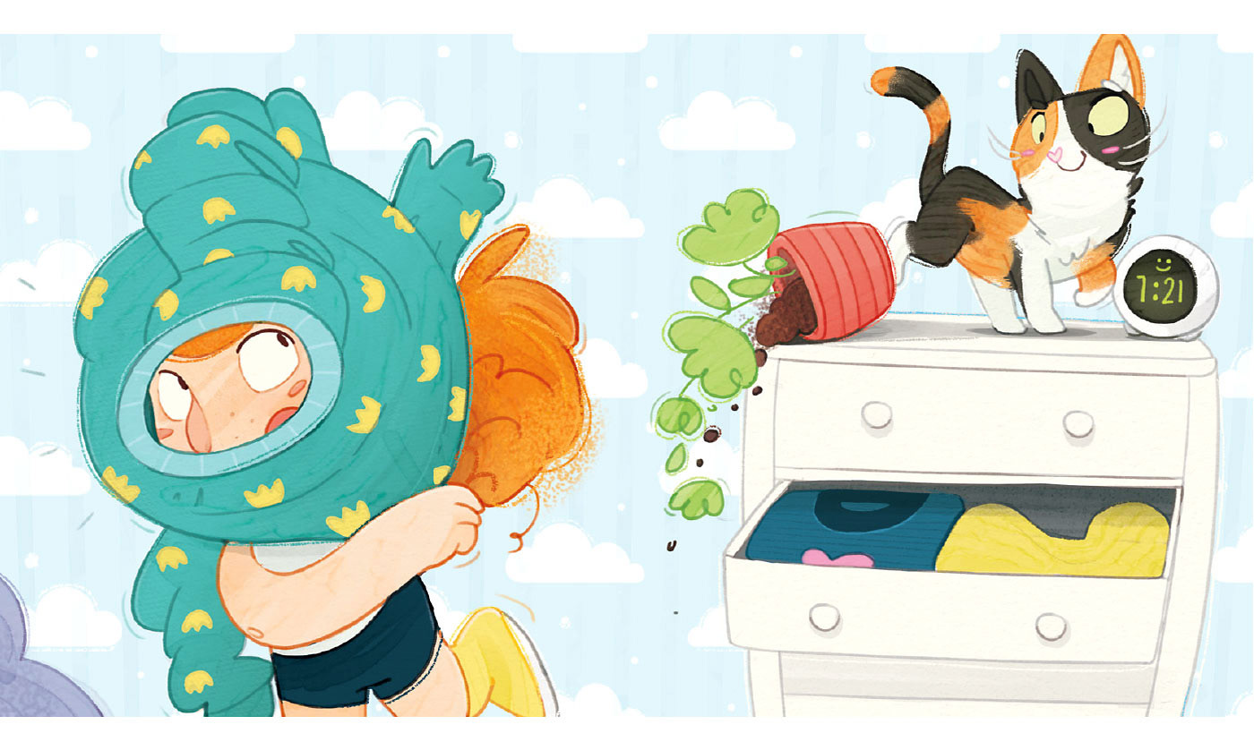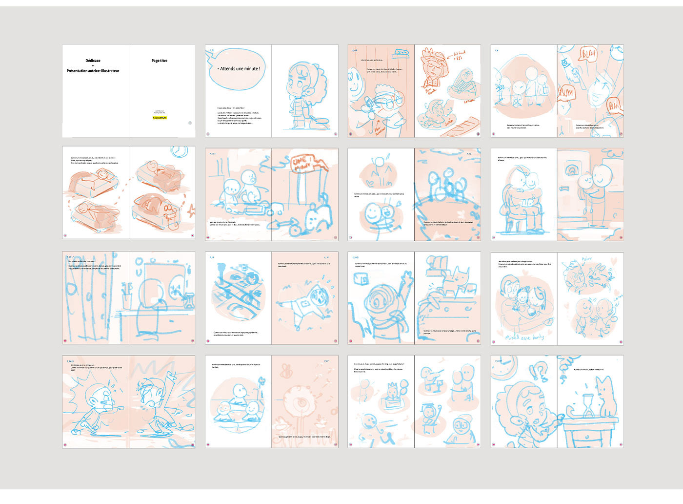From this point onward, it’s a process of gradual refinement. I take each spread, enlarge it, and start working on character poses, environments, and details. Once all the spreads are at the same level, I submit a round of “detailed sketches” to my editor for approval.