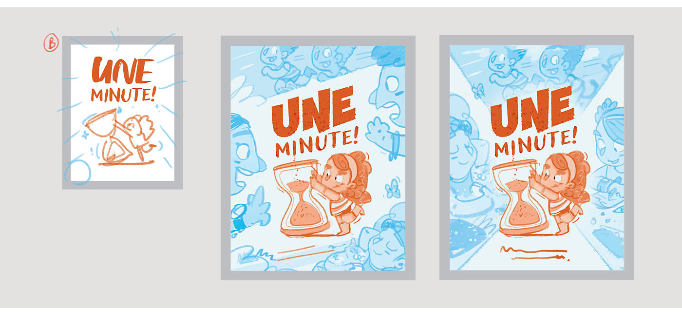This project’s cover needed more exploration than usual to clearly communicate the theme of time, so I went back to sketching thumbnails and trying out different ideas.